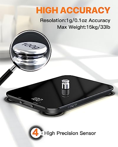Home Home & Kitchen 【33 LB & USB Rechargeable】Digital Kitchen Food Scale Kitchen Scale, Glass Digital Weight Grams and Oz, Baking and Cooking, 0.05oz Precise, 5 Weight Units (Black)