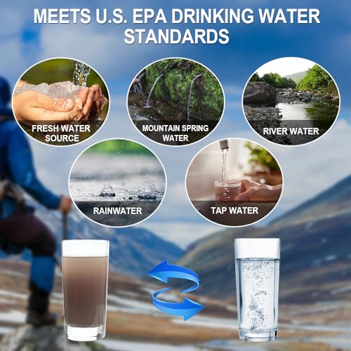 【𝐆𝐫𝐞𝐞𝐧 𝐚𝐧𝐝 𝐑𝐞𝐮𝐬𝐚𝐛𝐥𝐞】We have developed a new technology that provides a water purification tablets life of 2,640 gallons(10,000L) compared to other water filter, replacing approximately 20,000 16.9 oz single-use plastic water bottles.And it is replaceable.