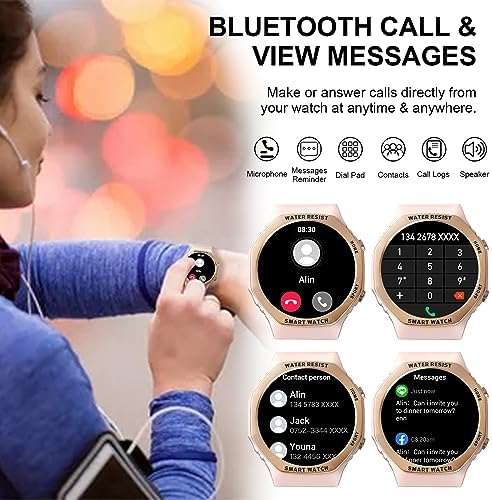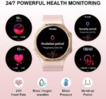 Convenient Bluetooth Calls – Thanks to the latest updated BLE5.3 chip, you can easily answer, make and reject calls on your smart watch with a Bluetooth connection, avoiding cumbersome connection steps and making this smart watch for women easier to use. The android smart watch can receive message notifications (WhatsApp, Facebook, SMS, etc.) in real time and is compatible with voice assistants. Compatible system: Android 9.0 or higher/iOS 12.0 or above
