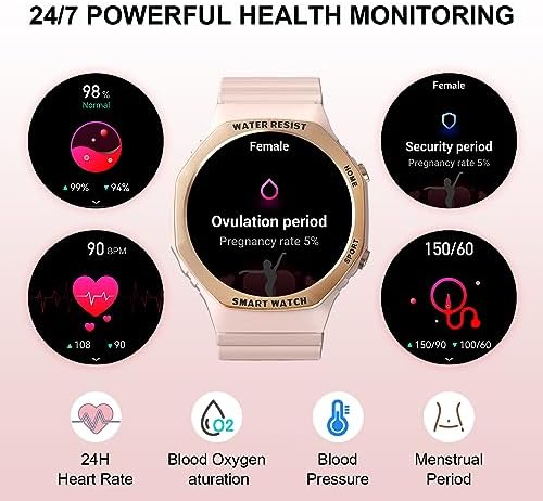 The Most Personal Care for Women – The ladies smart watches are equipped with the latest high-precision optical sensor that combines 24/7 heart rate, blood pressure, Blood Oxygen(SpO2) monitor and sleep in one. So she always knows your physical health. In addition, this activity trackers and smartwatches offers specially designed function reminders for the menstrual cycle, ovulation and safe period so you can prepare for special days in time