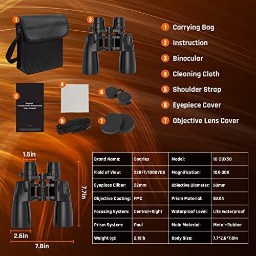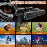 Durable, Waterproof & Comfortable Grip–Our powerful zoom binoculars have an unscented rubber armour coating, a non-slip fingerprint construction, and a safe and comfortable grip surface. O-ring sealed lenses with anti-fog coating keep moisture, dust, and other debris out of the binoculars’ interior, making them waterproof, shock-resistant, long-lasting, and easy to hold.
