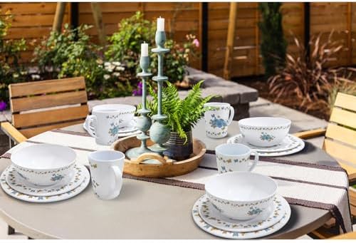 🍽️[Unique pattern]: A adorable set of dinnerware will highlight a dinner. Our dinnerware set is designed with blue floral butterfly pattern, represent beauty and new beginnings, elegant to perfectly matches most table settings, add some extra beauty to the delicious food but won’t steal the attraction. Your must-have dinnerware for everyday use or garden parties.