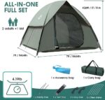 【All-in-One Set】The tents for camping are suitable for 2 -3 people (2 adults + 1 kid). With the unfolding size of 7*7* 4.26ft. This camping tent weighs just 4.19lb,which makes it very convenient to carry and you can have a comfortable and beautiful journey.