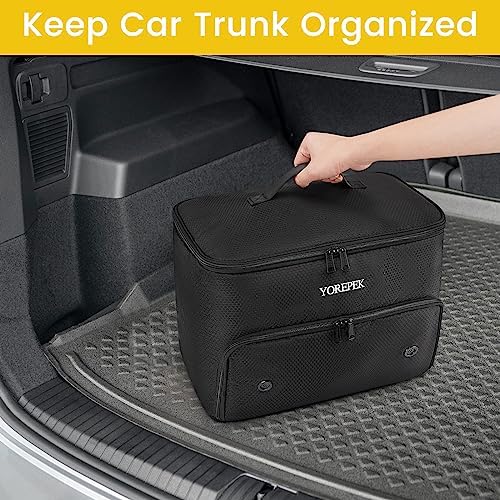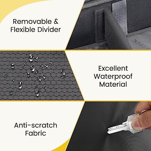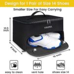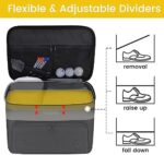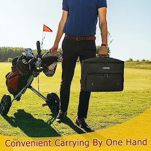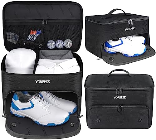 ⛳[FLEXIBLE STORAGE SPACE] The golf shoe bag has a flexible divider in the middle to separate shoes from clothes which helps you can adjust the height of the dividers according to the size of your shoes, making the space allocation of the organizer more reasonable. The golf trunk storage’s top section can be divided into 2 compartments ensure when placing your golf accessories or shirt and golf cap.