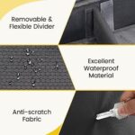 ⛳[HIGH QUALITY & CONSIDERATE DESIGN] The exterior fabric of the golf trunk is made of waterproof and anti-scratch polyester, which is not only easy to clean but protects your golf accessories and extends service time. The bottom compartment is with ventilated holes to keep air flowing around shoes. And the bottom storage space is made of polyester, which is easy to clean.