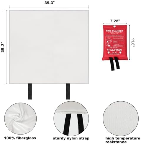 2 Pack Fire Blanket for Home & Kitchen, Fiberglass Flame Retardant Fire Blanket,Emergency Survival Safety Blanket For Home, Office, Caravan, Car,Camping,39.3"x39.3", Quick Unfolding with Loops