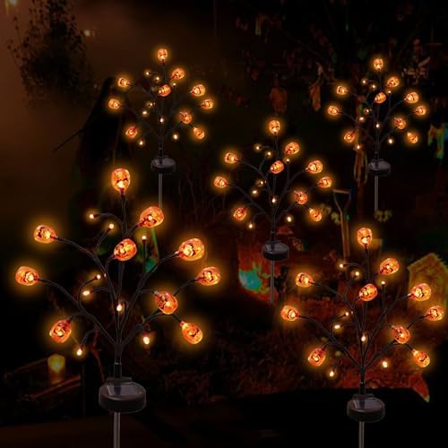 🎃【Solar Powered, Auto On and Off】Built in with light sensor, these solar Halloween stake lights will automatically turn ON in the dark, and turn OFF during daytime, energy-saving Outdoor Halloween Decorations.