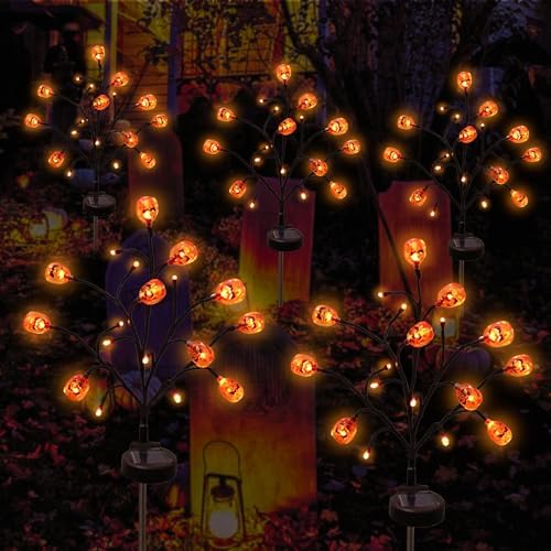🎃【Waterproof Outdoor Decor】 IP65 waterproof designed, these solar pumpkin stake lights can withstand various weather conditions, perfect addition to your outdoor Halloween decor and Thanksgiving decorations.