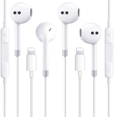 2 Packs-Apple Earbuds with Lightning Connector[Apple MFi Certified](Built-in Microphone & Volume Control) Headphones Compatible with iPhone 14/13/12/11/XR/XS/X/7/7 Plus/8/8Plus Support All iOS System