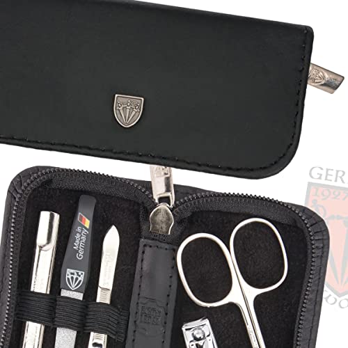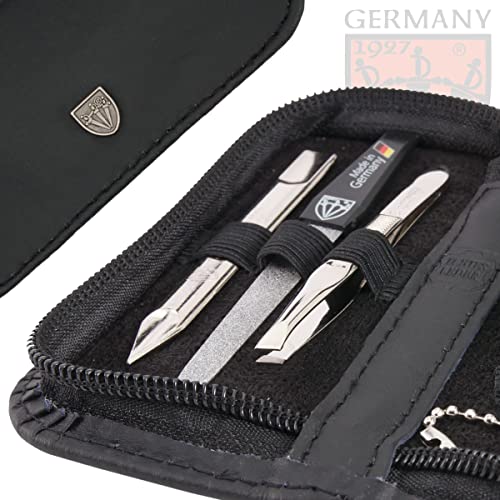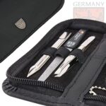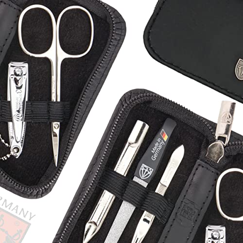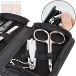 STEEL IMPLEMENTS: Hand made, bright nickel plated (protection against corrosion), polished and hardened. All sets come in an attractive gift box. Instruments are made in Solingen / Germany (except nail clipper).