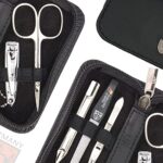 Each of our manicure sets comes in an attractive and sturdy gift box. In addition, our brochure “Fingernail and Toenail Care” is included with each set. You can find a lot of general information there, an overview of the most important manicure and pedicure instruments as well as some tips for caring of the case. A fine microfiber cloth for cleaning the contained steel instruments is also included in the case.