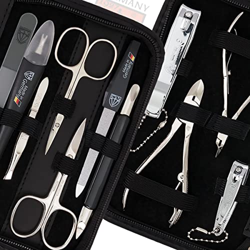 STEEL IMPLEMENTS: Hand made, bright nickel plated (protection against corrosion), polished and hardened. All sets come in an attractive gift box. Instruments are made in Solingen / Germany (except nail clipper).