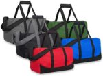 TECHNICAL DETAILS: These overnight bags measure 17” x 10” x 10” and are constructed of rugged, durable polyester cloth materials. Choose from black, gray, red, blue, & even green, all with pop color trim – so your bag stands out at the airport!