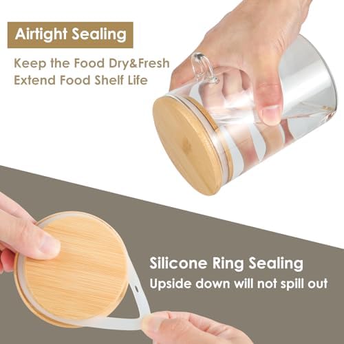 🍭Practical & Simple: This set of 15 Oz food storage jars with natural bamboo lids and spoons has a simple, modern design to add a touch of elegance to your kitchen or pantry. The airtight bamboo lids come with a silicone sealing ring that keeps moisture, dirt and other contaminants out, ensuring your food stays fresher longer.