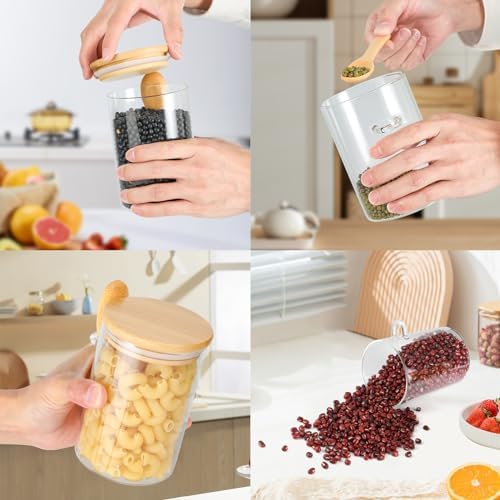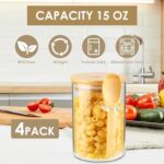 4 Pack Glass Containers Jars with Bamboo Lid and Spoon, 15OZ Airtight Glass Jars, Food Storage Jar Set Kitchen Glass Canisters for Coffee Beans, Tea, Flour, Nuts, Candy, Dry Goods, Cookie and More