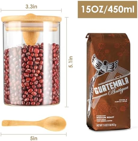 Home Home & Kitchen 4 Pack Glass Containers Jars with Bamboo Lid and Spoon, 15OZ Airtight Glass Jars, Food Storage Jar Set Kitchen Glass Canisters for Coffee Beans, Tea, Flour, Nuts, Candy, Dry Goods, Cookie and More