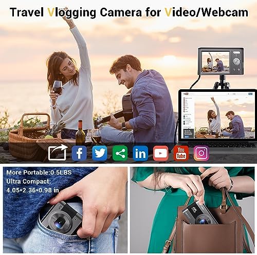 ✈️【Perfect Travel Companion】: Lighten your load while capturing memories on the go. Our compact and lightweight design, complete with a convenient lanyard, ensures comfortable shooting during your travels. The camera comes bundled with a 32GB card,a storage bag and 2 long-lasting batteries, catering to all your shooting needs for an extended period, letting you relish your vacation to the fullest.