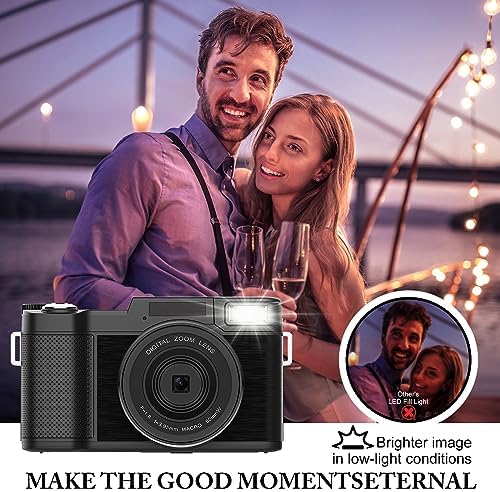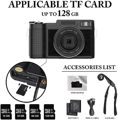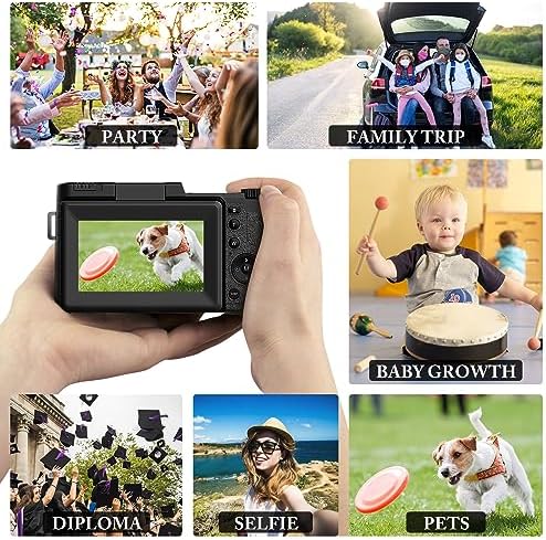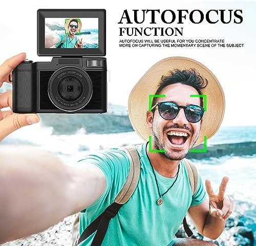 【Autofocus Camera & 16X Zoom】: The camera for photography has an auto-focus function and support 16X digital zoom that can also shoot landscapes from a distance through simple zoom in and zoom out buttons, capture amazing moments. In photo mode, by half-pressing the shutter button of the digital camera to focus, autofocus to be fast and accurate, even in low light conditions, perfect for vlogging or taking your own professional photos.