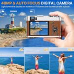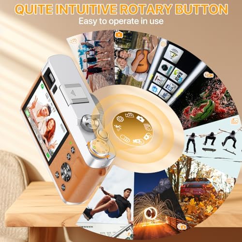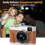 Stylish & Lighter Appearance – Retro brown lightweight exterior, simple and versatile, easy to carry.Built-In LED Flash and Viewfinder – Not afraid of low-light conditions and strong light.Equip with 8MP CMOS Sensor – Support 4K 30fps video record and max 48mp HD image.Auto Focus and Anti-shake – Smoothly recording sports, time-lapse and slow-motion, greatly improve the quailty of video and photo.External hot shoe – Compatible with flash lamps and external microphonesUSB Mobile Charging – Support mobile charging, the camera can be charged anytime and anywhere