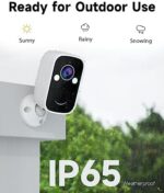 【Wire-Free & Waterproof】This battery camera is completely wireless, with no power cords or network cables needed. It comes with a built-in 5200mAh rechargeable battery, providing worry-free use for months on a single charge. With IP65 waterproof, it can work in any weather condition, making it perfect for outdoor use.