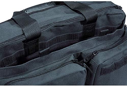 Extremely popular multifunctional bag the Side Trip Tactical Briefcase is tough enough for a battlefield but elegant enough for a boardroom meeting. The interior offers a MOLLE/SlickStick System compatible web lining that allows a completely customized layout while two large storage pockets at the front and one at the back provide ample space for additional accessories. A 5.11 Backup Belt System compatible covert pocket is large enough for a sidearm the roomy main compartment can hold a full sized laptop expandable side pockets blouse out to accommodate bulky items and a removable padded shoulder strap is fully adjustable for easy carry. Crafted from tough and stylish 1000D textured nylon. 16.5in X 12.5in X 5.5in main compartment 7in X 10in X 2.5in front pockets 16.5in X 10.5in X 2in rear pocket.