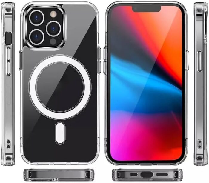 5 in 1 protection set for your iPhone 15 containing 1 phone case with magnetic wireless charging ring, 2 screen protectors and 2 camera protectors. Very durable 9H screen protector strength with oleophobic coating, bubble free instalation, anti yelloing case, ergonomic and slim fit.