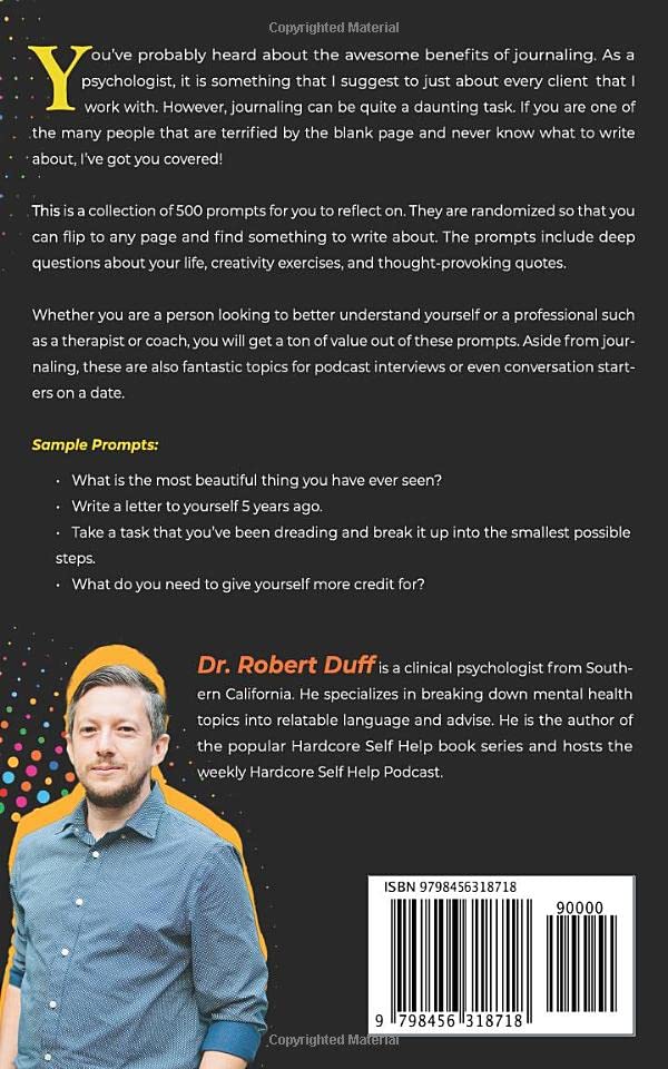 This is a collection of 500 prompts for you to reflect on. They are randomized so that you can flip to any page and find something to write about. The prompts include deep questions about your life, creativity exercises, and thought-provoking quotes.