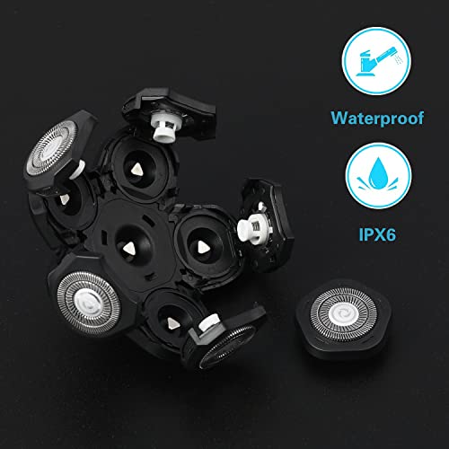 Comfortable shaving:This Men’s Electric Shavers Replacement heads with 6 blades heads, double ring anti-allergy stainless steel blades. Its 6d flex floating head rotates to follow the contours of your face, head, neck and chin, providing a closer and cleaner trim without irritating the skin. It won’t pull out your beard while shaving, giving you a fast and comfortable shaving experience.