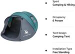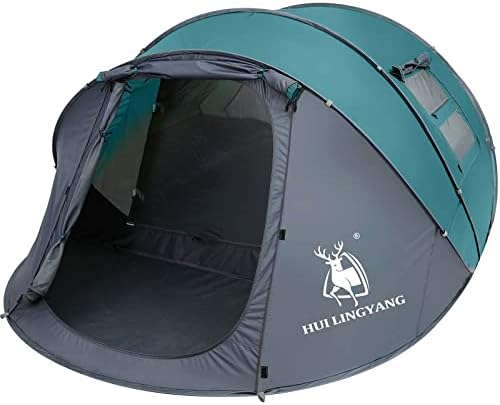 Tech Specs : Tent Fabric: 190T Polyster Floor Material: 210D Oxford PU3000 Waterproof index: 3000MM-4000MM Occupancy: 4-6 Person Set Up Style:Instant Color: Green, Blue Included: Tent, Storage Bag, Wind Rope,Stakes Pack weight: 11.68lbs