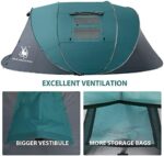 Every moment of your outdoor adventure is precious. Sets up in as little as 20 seconds,letting you and your children get back to enjoy the fun.This automatic tent is uniquely designed with pre-assembled poles, allowing to pop into place in a snap.Unique vestibule design offers separate room for lots of camping gears, shoes or your large dog.You can leave muddy shoes and outer clothing in the vestibule and needn’t bring dirt into main tent.Great for car campers, scout leaders, extended camping trips.