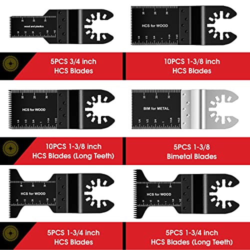 【Just Quantity? Quality Important As Well】Various oscillating cutter blades are made of premium HCS or Bi-metal material (M42 tooth, 65Mn blade), rigid stainless steel holders for completely smooth running and precise results, to ensure excellent wear resistance and long service life for each saw blade, huge choice of shapes and sizes for unlimited versatility.