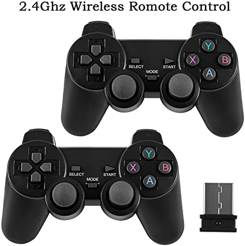 2.4GHz Wireless Controllers,Support Two-Player Games:Equipped with two 2.4G wireless joysticks, Sensitive without delay, get rid of the shackles of the thread.the connection distance of the controller is 8-10 meters,Plug and play, comfortable feel, you can better Enjoy the fun of classic nostalgic gameswith family or friends.