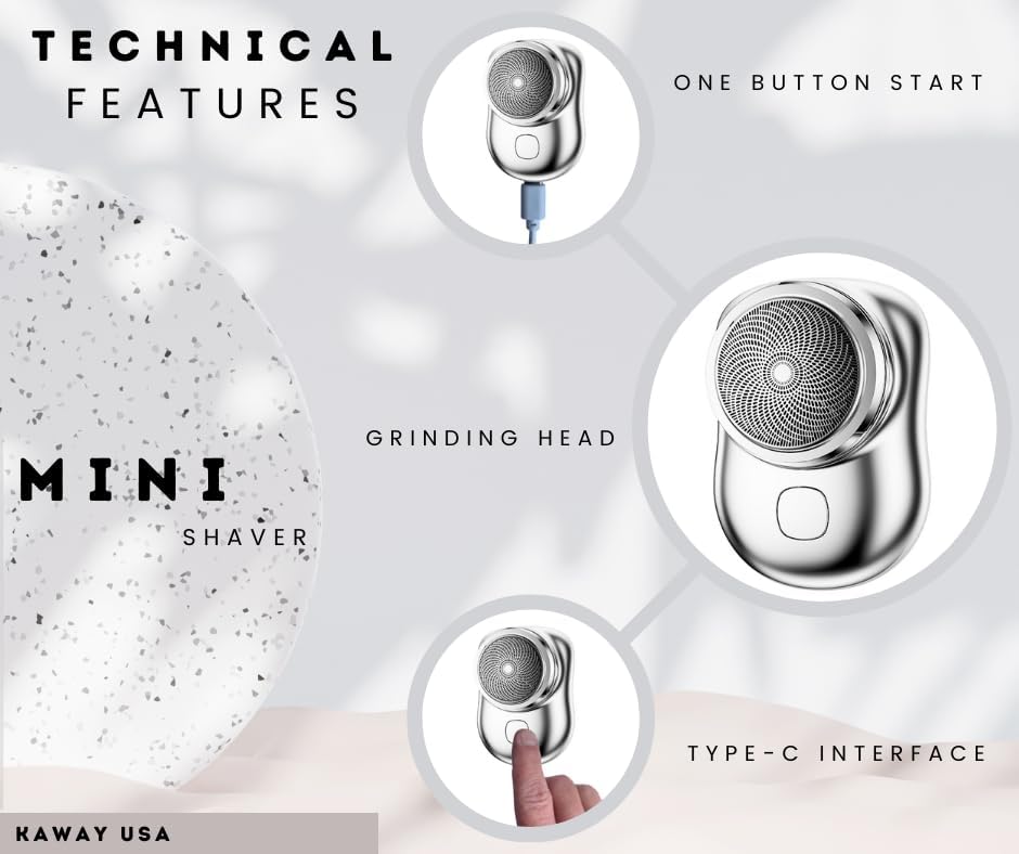 Mini Shaver: Precise Grooming Made Simple. Our Mini Razor is the perfect choice for men seeking a compact yet powerful grooming tool. Enjoy a smooth shave with ease, thanks to its one-button operation. Plus, it’s designed to handle your needs both in and out of the shower, boasting an IPX7 waterproof rating for full body wash support. Discover the convenience and precision of this mini shaver, tailored for men who demand the best in electric shavers. Ideal for on-the-go grooming!