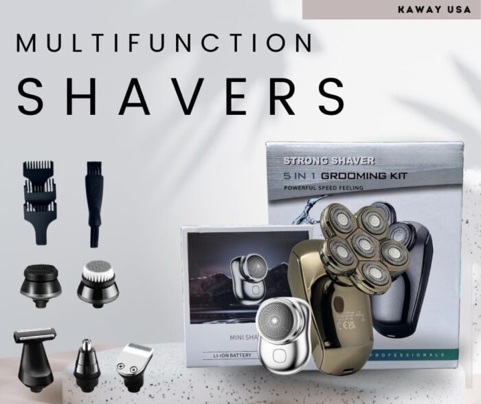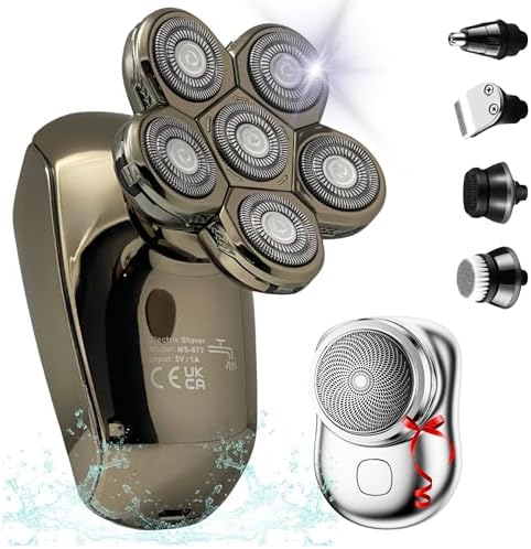 Get a flawless shave and an exceptional grooming experience with our amazing Our 2 electric shavers for men: 5-in-1 Head Shaver for Bald Men + Portable Mini Shaver.
