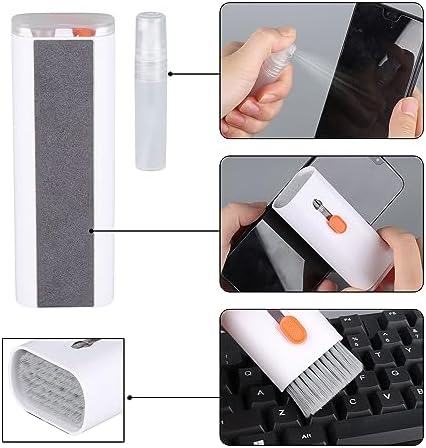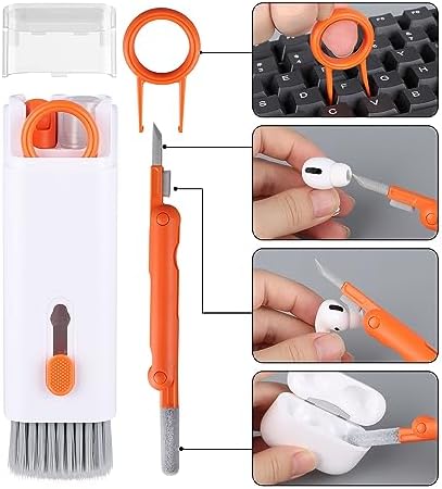 ⌨【Multifunctional】Flocking sponge can clean the dust in the wireless charging box of the earphone, high-density brush can clean the dirt on the sound hole of the earphone,plastic nib can clean the stubborn dust in the corner,suede detachable cleaning cloth can clean the LCD screen, clean with water and support repeated use