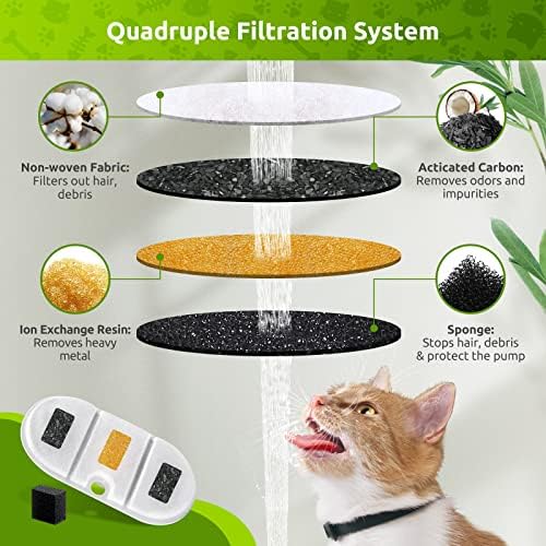 💦【QUADRUPLE FILTRATION SYSTEM】: Make pets happy with their drinks. This replacement filter consists of a cotton layer, activated carbon and ion exchange resin. it removes hair, debris, odors and other impurities so that the water always tastes fresh and clean. Sponges also prevent debris from clogging and damaging the pump,extending its working life;