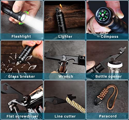 Home Tools & Home improvement Multitools AbeuRox 6-in-1 Multitool, Flashlight Multi-tool Kits with Rechargeable Flashlight, Lighter, Glass Breaker, Compass, Paracord, EDC Survival Gadget, Camping Gear, Cool Gifts for Men Women (Black)