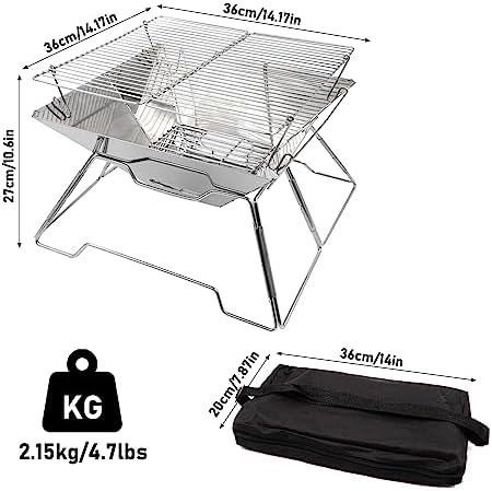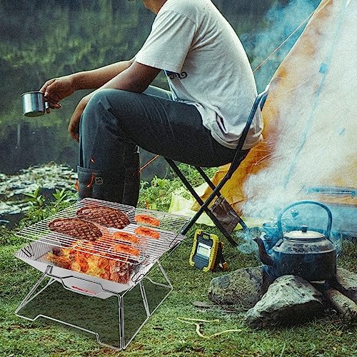 Acelane Folding Camping Grill, Stainless Steel Portable Fire Pit Campfire Grill for Backpacking Hiking Picnic Barbecue Outdoor, with Carry Bag