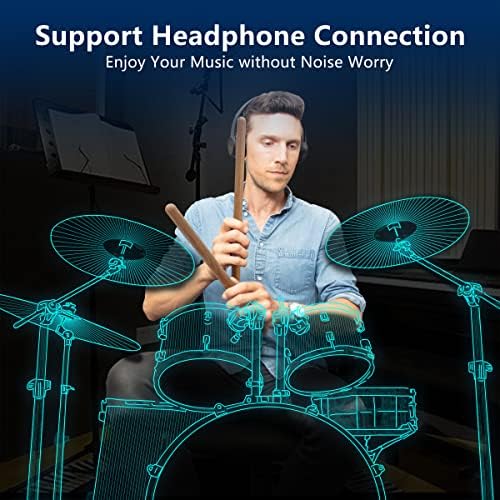 【High-Quality 8 Sounds Changing】The electric drum set features perfect sound quality with 8 different styles, including ROCK, FUNK, and JAZZ. Play along with favorite bands via Bluetooth or record and enjoy or creat music via USB or Bluetooth MIDI.