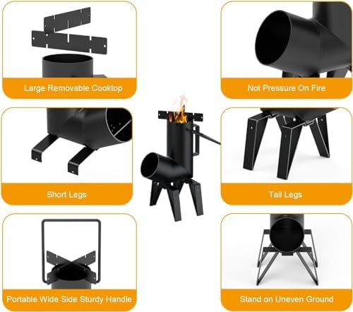 Perfect Design: The portable cooktop’s cross stand and wide grill provide a stable platform for your cooking pot or pan.Also designed with a large fuel chamber to help add wood and improve air flow,allows for longer burn times and more efficient heat transfer while producing low smoke.