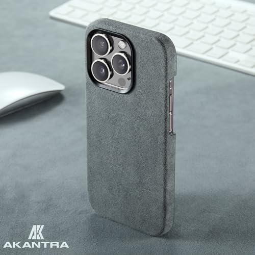 AKANTRA Alcantara Case for Apple iPhone15 Pro Max, Handmade Half-Wrapped Synthetic Suede Cover, Compatible with Magsafe Wireless Charging (iPhone15 Pro Max, Black)