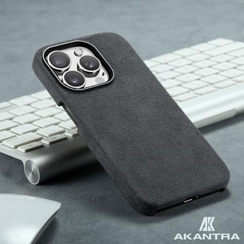 Home Electronics Smartphone AKANTRA Alcantara Case for Apple iPhone15 Pro Max, Handmade Half-Wrapped Synthetic Suede Cover, Compatible with Magsafe Wireless Charging (iPhone15 Pro Max, Black)