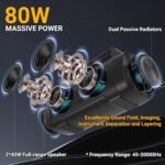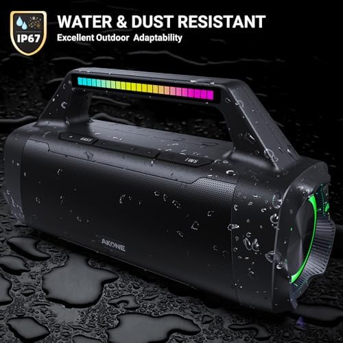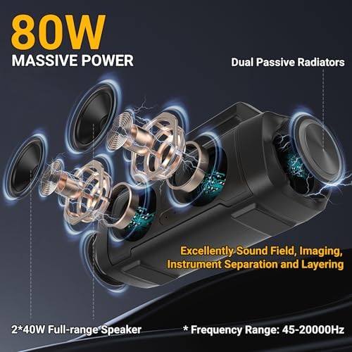 Excellent Outdoor adaptability: Enjoy worry-free outdoor entertainment with IP67 water and dust resistant exterior, Bluetooth 5.3 faster connection and 100ft long range. Up to 80W powerful output and True Wireless Stereo(TWS) pairing capabilities for a dynamic listening experience in a pool beach party, camping or anywhere.