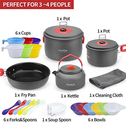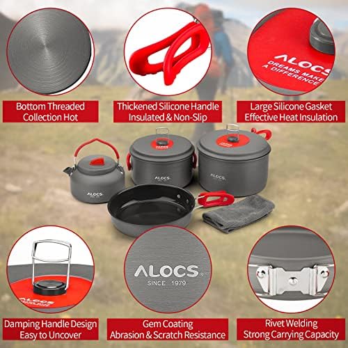 GREAT FOR OUTDOOR KITCHEN — This ALOCS cookware kit is designed for anyone loves outdoor camping with families and friends! You can enjoy cooking anywhere you go, cooking dishes your favorite dishes. We value our customers’ experience, If you are not satisfied for any reason, please let us know and we always here to assist you.