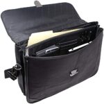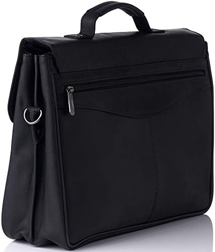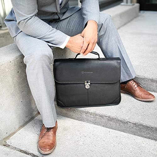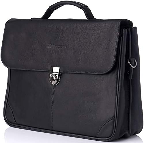 Flap Over Single Lock Briefcase By Alpine Swiss Product Features: Genuine Leather TSA APPROVED PERSONAL ITEM – Measurements 16.5” x 12.5” x 4.5” – TSA approved as a personal item or a carry-on to bring in flight, fits under seats as well. SMART DESIGN – Flap over tuck lock main closure comes with 2 keys. Comfortable padded adjustable, removable shoulder strap. Double gusset construction with 2 main inside compartments. Middle divider also acts as a zipper file pocket. Carries Letter A4 and Legal-Size documents. Organizer area includes pen, card holders and an expanding 5.5” x 4.5 x 1.25” pouch. Two additional zippered file pockets one inside and an outer back zip file section. DURABLE CONSTRUCTION- Leather handle and shoulder strap buckles are attached to the case using metal rivets and plates to insure these do not rip over time with the weight strain. Superior workmanship, well stitched and put together with attention paid to every detail of the construction process. Self-mending zippers and corrosion-resistant metal hardware. Semi-structured construction gives this bag a stable base to stand on its own yet flexible upper to conform as needed. LUXURIOUS LEATHER – Colombian Vacquetta Leather is a durable pebble grain finish leather. This material is made of cowhide and is minimally treated to maintain its natural beauty. Each case can have its own unique characteristic grain and markings as well as color variations. WARRANTY – Comes with Alpine Swiss manufacturer’s warranty. MSRP $295.00