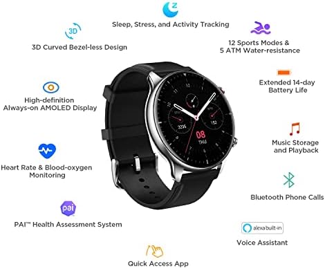 YOUR SMART ASSISTANT: The Amazfit GTR 2 can proficiently handle your personal agendas – notify you of incoming calls or texts, provide sedentary reminders, Do Not Disturb, stopwatch and weather forecast functions, as well as enable the setting of alarms and timers.