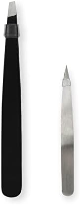 Pointed and angled tweezers remove unwanted hairs