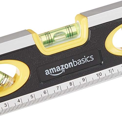 Amazon Basics 9-Inch Magnetic Torpedo Level and Ruler, 180/90/45-Degree Bubbles