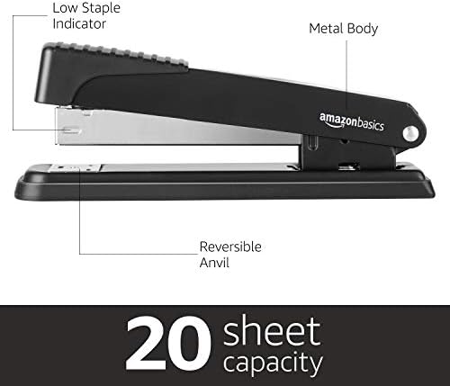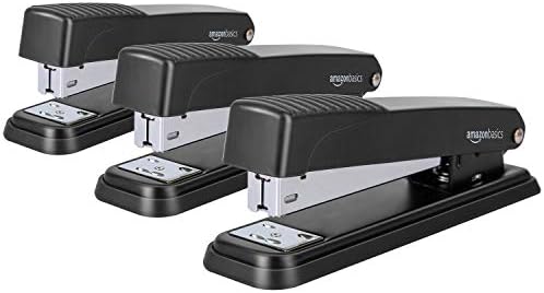 Amazon Basics Desktop Stapler, Full-Strip, 20 Sheet Capacity, Black (Pack of 3)