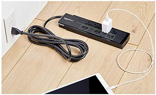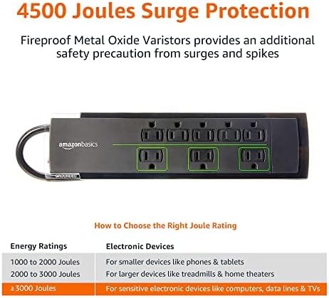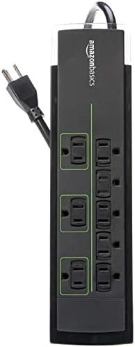 Amazon Basics 8-Outlet Power Strip Surge Protector, 4,500 Joule – 12-Foot Cord, Black/Green